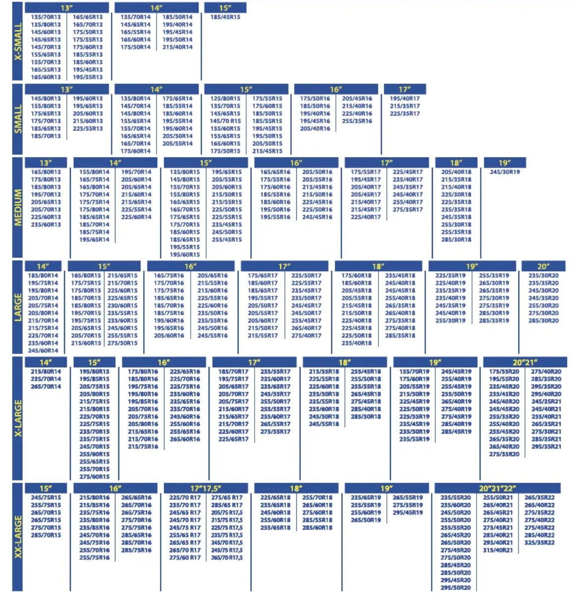 Disponibili in 6 misure differenti, queste calze da neve sono compatibili con un’ampia varietà di pneumatici