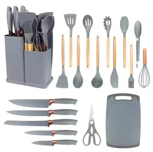 Set cucina: 12 utensili in silicone 5 coltelli acciaio inox + accessori